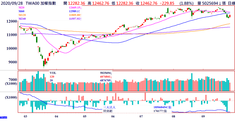 果然在九月二十四日當天,台股跳空大跌三一九點破季線,從九月十六日至九月二十五日短短八個交易日,台股從13021點跌到12149點,重挫了八七二點。