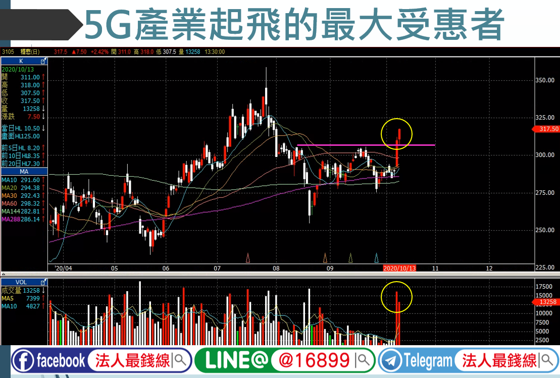 全球來看,4G+5G手機出貨量有機會由今年的十二億支左右成長到明年的十三億支,而屬於5G的出貨量更有機會走出倍數成長的規模,所以在5G手機及基礎設施的受惠概念族群,就屬於PA相關了,因此從上周開始,包含穩懋(3105)即逐漸走出打底完成向上的趨勢,後續走勢可以相當注意。