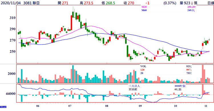 圖/聯亞(3081) 拉回量縮低進