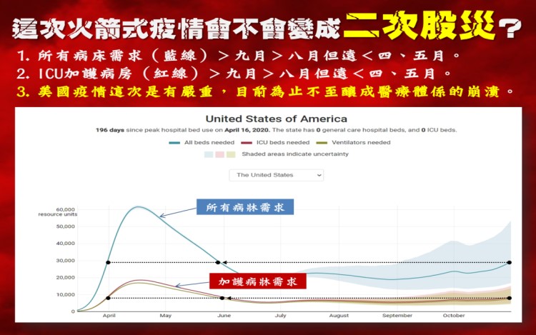 而市場認為歐美二度封城會造成經濟的復甦力道再次疲軟一說,我持保留看法。舉凡餘震一定不會強於主震、二階衝擊往往低於一階衝擊,應用在股市也是如此道理。更何況我們將這次疫情數據化,觀察全美新增病床及ICU(加護病床)有無比三至五月來得嚴重?從附圖可以明顯發現差距甚遠,且ICU病床又較整體新增病床來得平緩,代表雖有疫情,但不致釀成醫療體系崩潰。