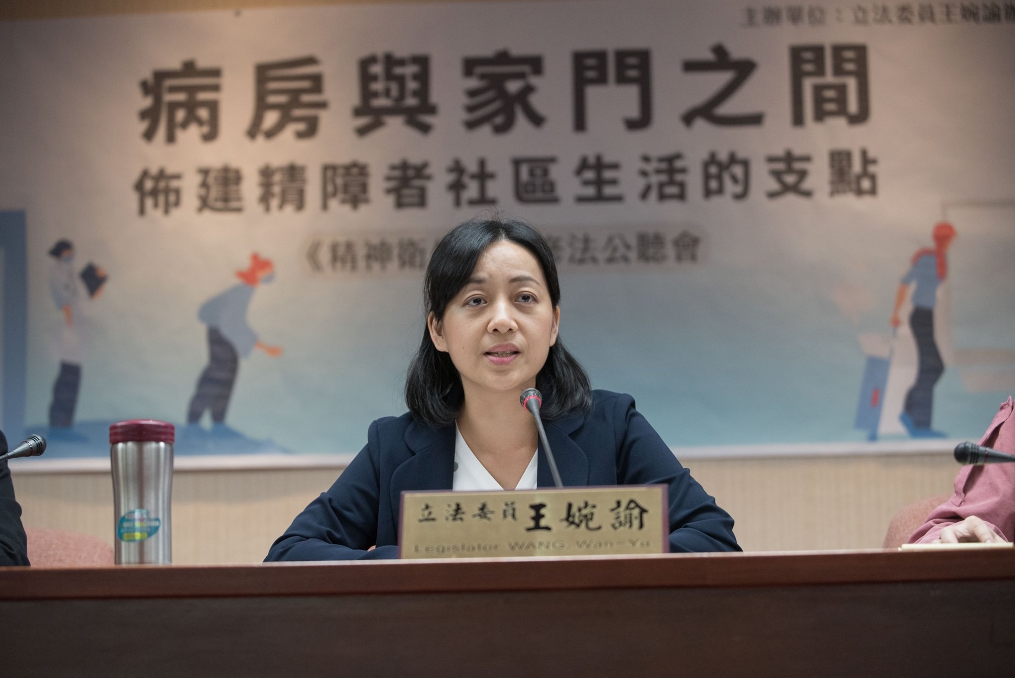 根據精神科醫師說法,大部分個案治療六到十二個月,病情會趨於穩定,即可回到職場做些簡單的工作,傳統方式是把精障者關在家裡,精障者和陪伴者常起衝突,王婉諭表示,如何幫助精神疾病患者與這個社會保持連結,不讓他們從社會安全網墜落,是她從政非常重要任務。