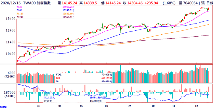 領先市場在十一月二日12481點這波起漲時就告知,區間整理近尾聲,將往上突破波段大漲上去,而且是數個月的波段行情,指數也如預期在日前再創下14427點歷史新高。