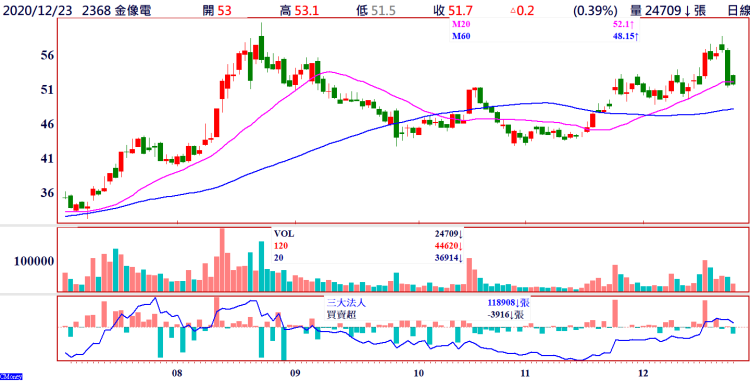 【操作建議】十二月十六日拉出一根中紅棒,顯示多頭攻擊力增強,加上量價結構配合,中期籌碼相當安定,一旦股價站穩60元整數關卡,長線有機會向上挑戰72元反壓。