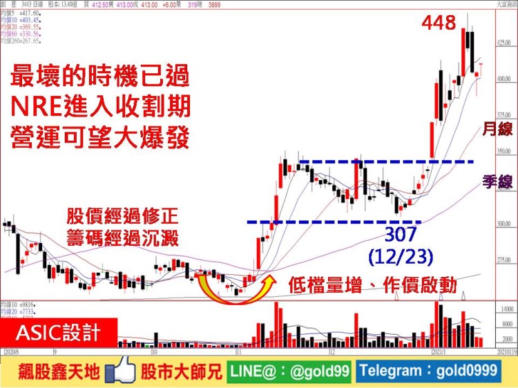 (1)NRE認列高峰到,2020年12月營收登頂:受惠七奈米及12奈米特殊應用晶片(ASIC)的委託設計(NRE)認列入帳,五奈米測試晶片設計案帶來營收貢獻,去年12月營收衝上新高達19.88億元,月增93.78%,年增75.67%,第四季營收39.44億元,季增11.76%,年增19.62%,累計2020年營收135.69億元,年增26.7%。