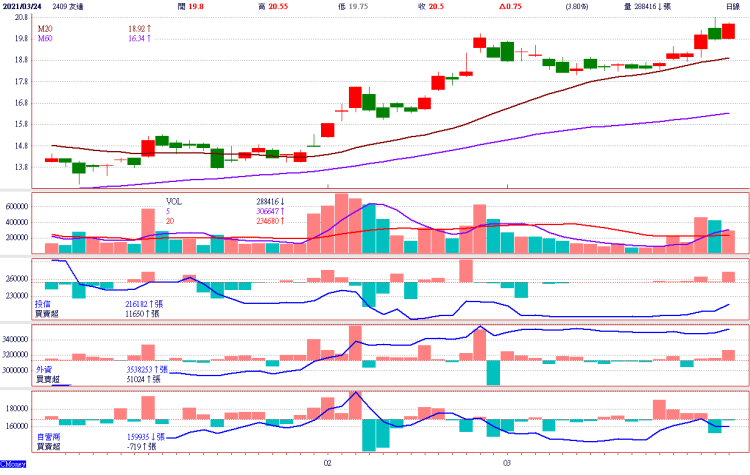 友達(2409):受到面板驅動IC與電源管理IC缺貨影響,一月份供應鏈再調高面板報價。觀察國際面板廠,三星、LGD以及京東方等去(二○二○)年第四季營收皆呈現正成長,法人預估在產業景氣整體升溫環境下,友達二○二○年營收將由虧轉盈,今年第一季淡季不淡。