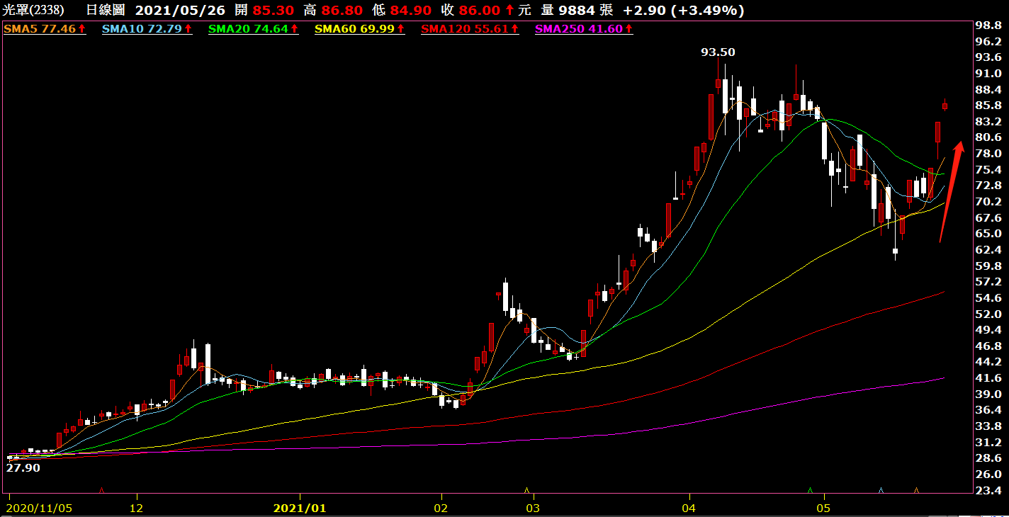 根據過去經驗,IC設計因具備股本小、高獲利特徵,通常會是多頭領先表態的族群,例如天鈺擁有鴻海集團內部有夏普的晶圓代工廠的支援,股價拉回到半年線附近,一個跳空漲停站回十日均線後,整理兩天就緊接著二連板,重回所有均線之上,與矽力-KY、智原、晶豪科、鈺太並列這波IC設計反彈的人氣指標。