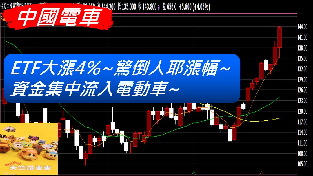 加上觀察陸股走勢,資金正集中往電動車,電動車的ETF─中國電車(2845.HK)連續數日大漲,五月三十一日漲幅高達4%,以指數來說,這是相當驚人的漲幅!同時我們可以觀察到前波電動車領頭羊─寧德時代,已經過了今年一月初時的高點,這個產業慢慢的有戲看了,投資朋友可以就資金流向持續追蹤,進而佈局!