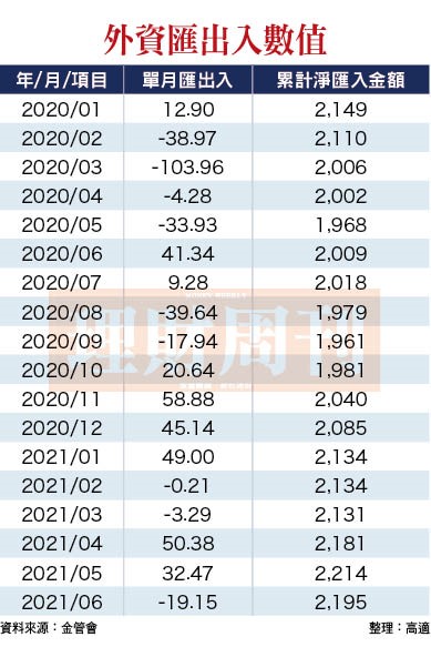 根據彭博資訊,今年第二季外資從泰國、菲律賓及馬來西亞股市共流出二七億美元,創去年第三季以來最大金額,主因就是印尼、菲律賓及泰國完整接種完疫苗的比率不到一○%,馬來西亞也僅有一一%。同樣的情況也出現在台灣,外資六月賣超台股五一○億元,同時也淨匯出達到十九.一五億美元(約台幣五三○億元),顯示外資操作邏輯具有一致性。一旦外資態度轉變成趨勢,對東南亞股市的大型權值股及指數表現就較為不利。