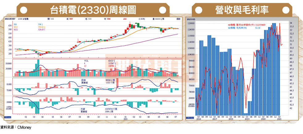 如果台積電六月營收亮眼及七月十五日法說又能給出優於市場預期的財測,相信原本還在看空、觀望的資金就會陸續開始回補,帶動目前仍落後費半指數及加權指數的股價,走出一段落後補漲行情。