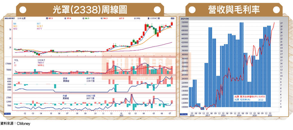 由於台積電將資源集中在先進製程,把成熟製程的光罩需求委外已成新趨勢,光罩(2338)就成了最大受惠者,目前已陸續量產九○奈米、六五奈米,公司預計四○奈米、二八奈米將分別在今年底及二○二三年量產,提供更多可承接委外需求的製程選擇,增添未來營運成長動能來源。