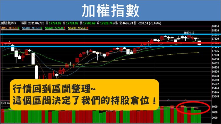 回頭看看台股,在創下歷史新高後,連三天向下回檔修正,改變了原本的上升軌道,回到區間整理,這個區間我們可以抓18000-17600-17400,這個區間決定了持股的倉位,這個區間最重要的就是量能的變化,量縮價就穩,量增就容易有方向,這兩天的回檔,量是縮的,這是好事,價就有機會趨穩,只要三日內站穩月線,回到強勢整理的區間,盤勢就還有創新高的空間!