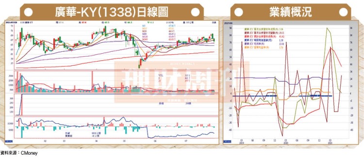 展望第三季營運,廣華指出,儘管第三季一向為汽車產業的傳統暑休淡季,加以全球新冠肺炎疫情仍持續肆虐,且新台幣匯率波動性仍在等不確定性因子,依舊對公司營運、業務等面向帶來考驗,但仍積極採取產線自動化、產品組合調整,同時採行加強與優質客戶深入合作的重要策略,預料伴隨全球車用晶片供貨緊缺問題,可望於第三季漸趨紓緩,主要品牌車廠將有機會縮短暑休,擴大生產計劃,追趕預訂目標銷售量下,第三季整體營運可望淡季不淡。
