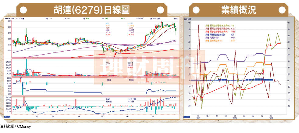 今年上半年,儘管國際銅價大幅飆漲,且自五月份開始,印尼、越南二國新冠肺炎疫情持續延燒,但胡連於印尼、越南等地工廠的生產、出貨,皆維持正常運作,整體營運並未受到太大衝擊。第一季合併毛利率三九.三七%,年增八.七七個百分點;單季稅後盈餘二.二四億元,年增多達二.九三倍,單季EPS為二.二五元;累計今年前六月合併營收二三.二九億元,年增率達五七.八八%。
