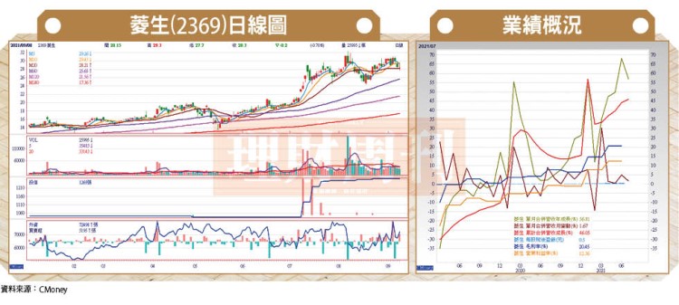 菱生因受惠景氣回升、帶動封測訂單回流,包括微處理器(MCU)、電源管理與射頻晶片、NOR/NAND Flash記憶體等晶片封測訂單相繼湧入,因而帶動營收逐季好轉,今年首季更順利轉虧為盈。同時,隨著生產線稼動率的提升,並配合調漲代工報價以反應成本走揚之下,菱生營收自三月開始,即持續創高,順勢帶動獲利同步走升。