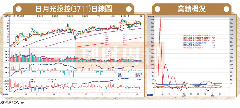 由於晶圓封測代工產能已全線滿載,加以順利調漲封測代工價格之下,台灣IC晶圓封裝測試龍頭廠日月光投控(3711)七月封測事業合併營收達二九二.一三億元,月增率八.四%,年增率二○.八%,表現優於市場原先預期;加計EMS事業七月集團合併營收達四六四.八○億元,月增率七.三%,年增率達二四.五%,成功創下歷年同期新高紀錄。