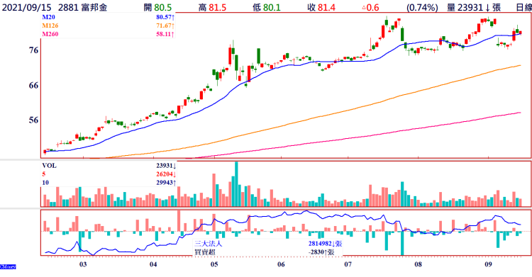 富邦金今年前八月EPS已經高達11.69元,全年EPS估計可高達15元以上,再寫新紀錄,以九月十五日收盤價81.4元計算,本益比只有五倍,仍具備長線投資價值。