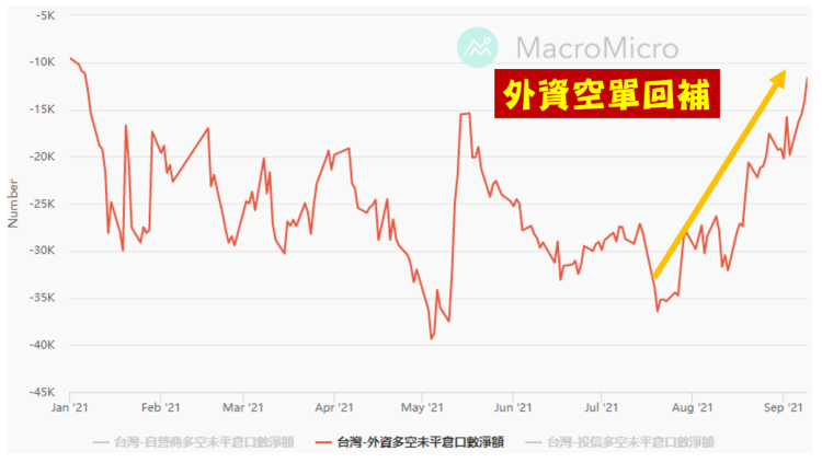 外資自去年十二月以來,期貨部位由多翻空,今年以來淨空單至少都有10220口,在五月股災時淨空單甚至一度達到39364口,七月份台股見高時也有淨空單36438口,然後經歷了八月份的大跌後,外資忽然開始回補空單,截至九月十日為止,外資期貨淨空單已經只剩11655口(見圖三),非常接近今年最少的狀況,代表外資對於後市並沒有看空,反而非常有機會在此翻多,那你有什麼理由在這邊看空呢?