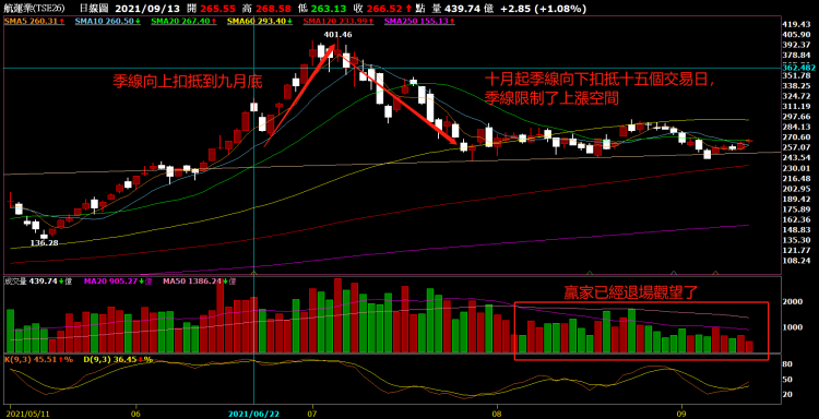 九月八日中美歐的海運監管層開了個會議,九月九日全球第三大海運企業法國達飛就宣布運費凍漲到明年二月,這表示第四季的運費不會循著過往的淡旺季模式而下跌,驗證長榮的觀點─塞港到明年第二季。但長期來看,全球第五大海運商德國赫伯羅特也跟進凍漲,暗示市場,運費已經觸頂,剩下的問題是高運價會在天花板持續多久。