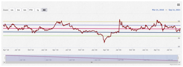 清楚一家公司股票的歷史價格走勢,當別人因害怕股價繼續下跌而開始停損出清時,就是進場撿便宜的好時機,正常狀況下,會有三成的報酬,如果是股災或黑天鵝逆襲,股價繼續下探,堅定越買越低,會意外帶來三成以上的超額報酬。