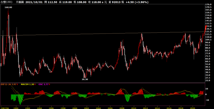 從三大法人的進出表可以發現,台塑成為新寵,截至十月六日止,股價也罕見的來到119元,即將突破疫情前的119.5元前高壓力,如果十月份中國持續限電的話,不排除三大法人可能持續加碼台塑。