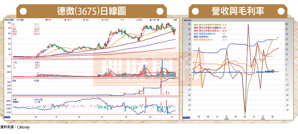 另外,德微全面啟動自動化製程,現階段已見到實質成效;今年前七月,每股稅後盈餘(EPS)已達三.六五元,已超越去年全年二.一元,未來將持續投入全自動化封裝製程應用技術,全力衝刺車用電子產品線自動化生產達標。市場法人預估,全自動化製程將有利於提升毛利率三至五個百分點。