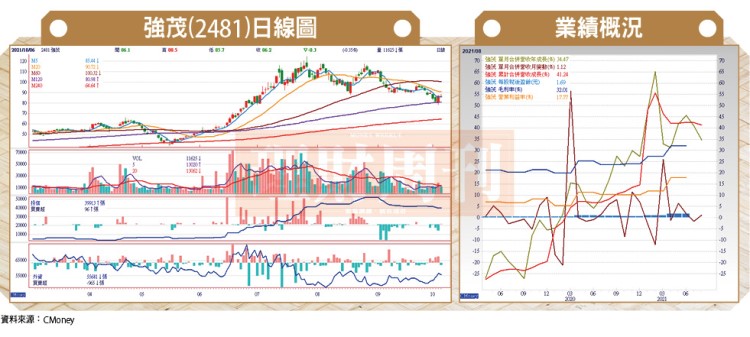 今年以來,強茂受惠於消費性、車用、工控等各式終端市場需求強勁,二極體產品線因此出貨暢旺;加以原材料漲價、產品單價提高,於市場需求暢旺下,得以順利轉嫁予客戶,因而帶動今年前八月合併總營收達九一.八三億元,年增率達四一.二○%,成功創下六年以來的同期新高,連帶也推升上半年獲利達八.五五億元,與去年同期相較,年增率高達一一四%。