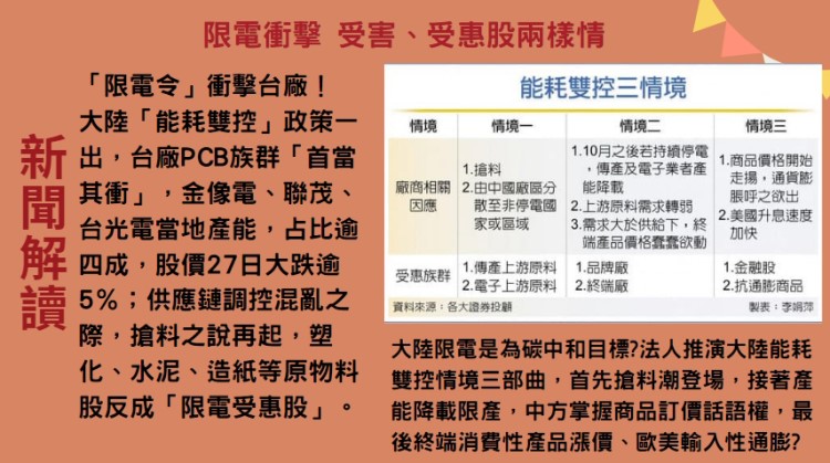 疫情也繼續影響總體經濟,疫情衝擊暫時無解!新變種病毒使疫情持續擴大,目前時序來到秋冬之際,未來可以預測國際疫情恐怕會持續增溫,第四季經濟基本面走弱就可以預期,加上中國無預警的限電措施,影響所及,產線停滯而使運價重挫,歐美等地也要注意輸入性通貨膨脹的逐漸顯現。