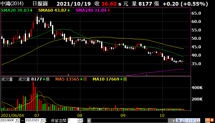 鋼鐵股的跌勢看起來沒有航運股兇,但中鴻其實從高點回檔也高達44%,就像是溫水煮青蛙,每天跌一點點,有幾天多跌一點點,累積下來的跌幅還是很驚人的。