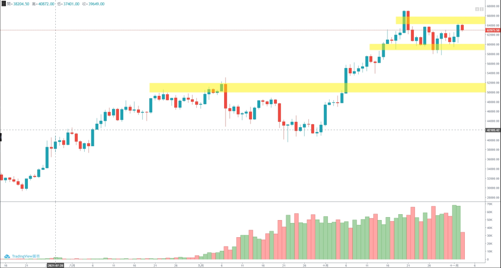 近期比特幣的表現似乎沒有跟上元宇宙題材,但諸如Robinhood等美國線上券商,甚至澳洲聯邦銀行(CBA)等傳統金融體系,都陸續導入比特幣的服務,代表比特幣的市場需求依然魅力不減。此外,比特幣在十月份從四萬八千美元一路漲到最高六萬七千美元,漲幅也高達三成,市場稍作休息轉往其他仍有爆發性的代幣也是情有可原。