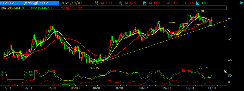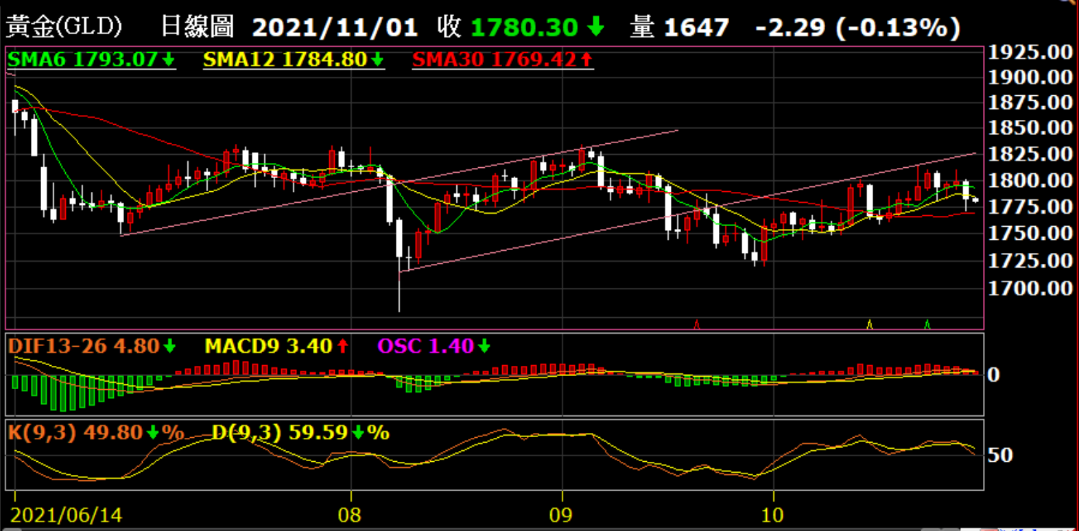 十一月一日:黃金震盪交投於一七八○美元附近,因市場對美國Fed本周決議縮債和明年升息的預期不斷升溫,這給金價帶來沉重的壓力,不過由於美國經濟增長緩慢,勞動力市場依然面臨嚴峻問題,美國經濟滯漲擔憂興起,限制了金價在美國Fed決議前的跌幅。