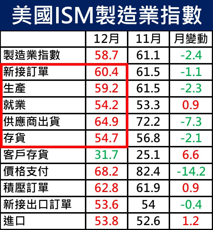 美國供應管理協會(Institute for Supply Management, ISM)每月針對製造業採購經理人進行問卷調查,內容包括新訂單、生產、雇員、供應商交貨、存貨、客戶端存貨、價格、出口、未完成訂單、原物料輸入等十項指標,最後彙整成製造業採購經理人指數,美國ISM製造業指數是市場非常重視的指標,不但意味美國本身狀況,同時也透露全球外需景氣。