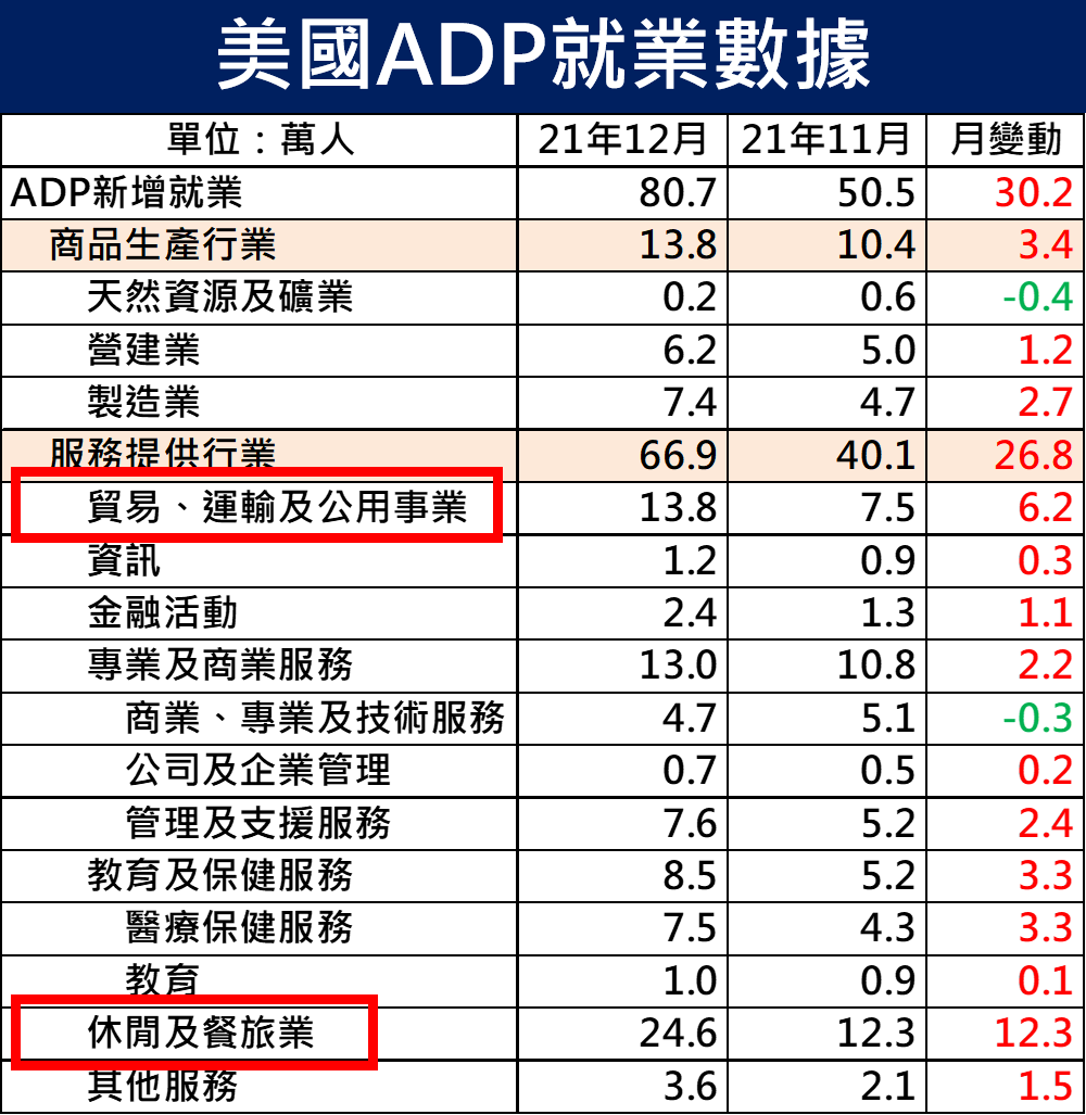 從細項結構來看,最主要的推力來自於休閒與餐旅業,新增了24.6萬人,這也代表美國內需表現強勁。