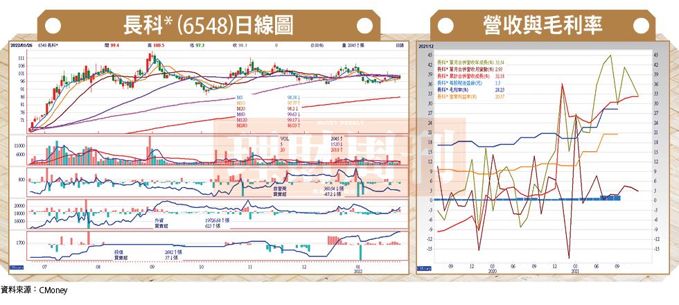 長科*(6548)表示,今年訂單能見度已可透達上半年,客戶對導線架需求仍持續未減,導線架市況榮景可期,法人機構看好長科*今年全年可望賺超過五個股本。