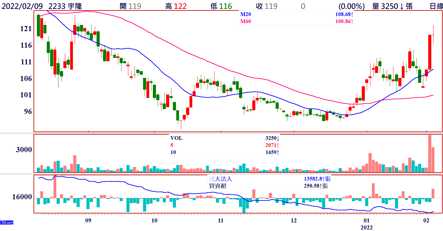 【操作建議】短期股價衝高至115元後拉回修正,由於價跌量縮,顯示中線籌碼尚屬安定,可於股價回穩後低進。