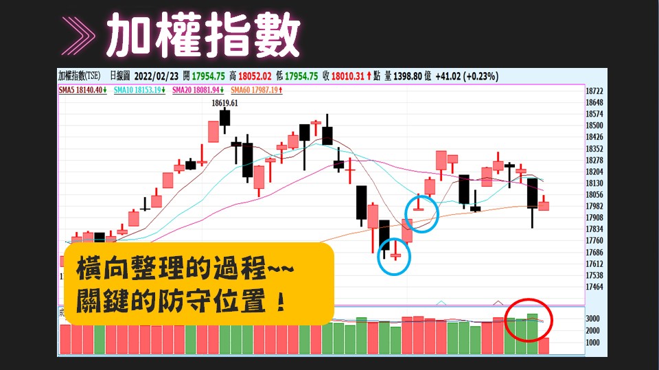 台股亦維持著區間震盪,17600-18600,千點的區間,波動怎能不大,如文章一開始提到,投資朋友應做好部位控管、選擇趨勢向上的產業。橫向整理的過程,有二個防守點很重要,一個是二月八日的跳空缺口,一個是封關前的低點,倘若跌破,那麼行情的後續壓力就會比較大了點,到時得適時的縮減部位!