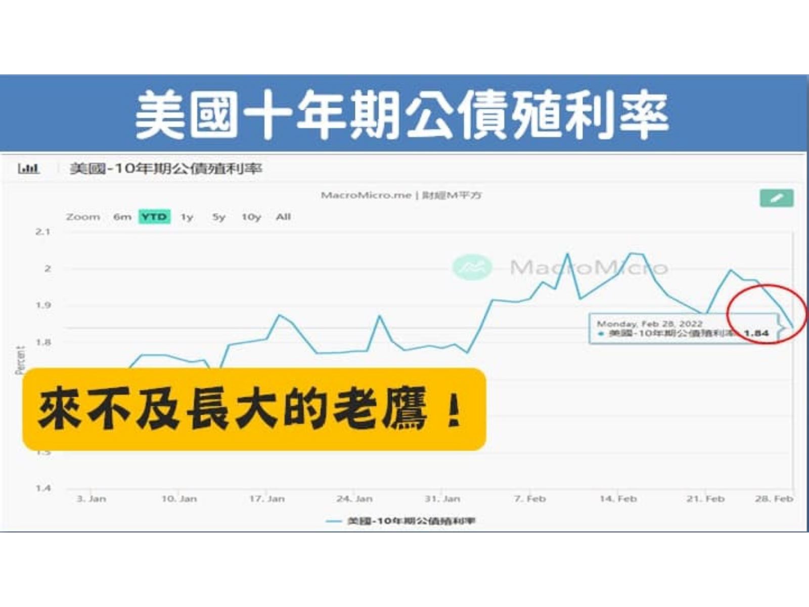 西方國家禁止部分俄羅斯銀行使用SWIFT,並凍結資產,美元資產流通在外減少,某種程度代表變相縮表,市場認為聯準會貨幣政策的緊縮速度或將放緩,美國十年期公債殖利率大幅滑落,老鷹有可能折翼來不及長大?