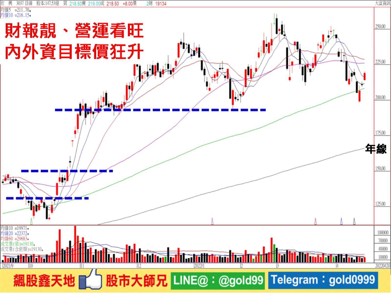 (3)內外資喊買欣興至少三字頭:欣興2021年第四季財報超標,上調2022年資本支出,對長遠展望優於市場預期,利多爆發力強大。高盛證券指出,從欣興經營管理階層對ABF市況展望、ABF設備交期拉長、高階ABF專案貢獻度提高,加上ABF客戶更積極提前確保產能,看好欣興股價將持續獲得市場追捧。