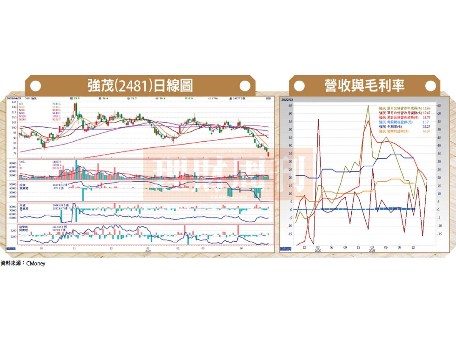 展望第二季營運前景,由於中國手機、家電消費性產品市場需求不佳,強茂消費性產品應用相關營收板塊,可能因此受到影響。不過,強茂近年來積極調整旗下產品線、出貨組合,專注於MOSFET、IGBT、FRED、ESD Array等相關產品板塊設計開發,同時積極佈局第三代半導體材料碳化矽(SiC)領域。伴隨車用、資料中心、工控,電動車、5G等高階市場佈局發酵,料將有助於降低消費性產品市場需求減弱所帶來的衝擊。