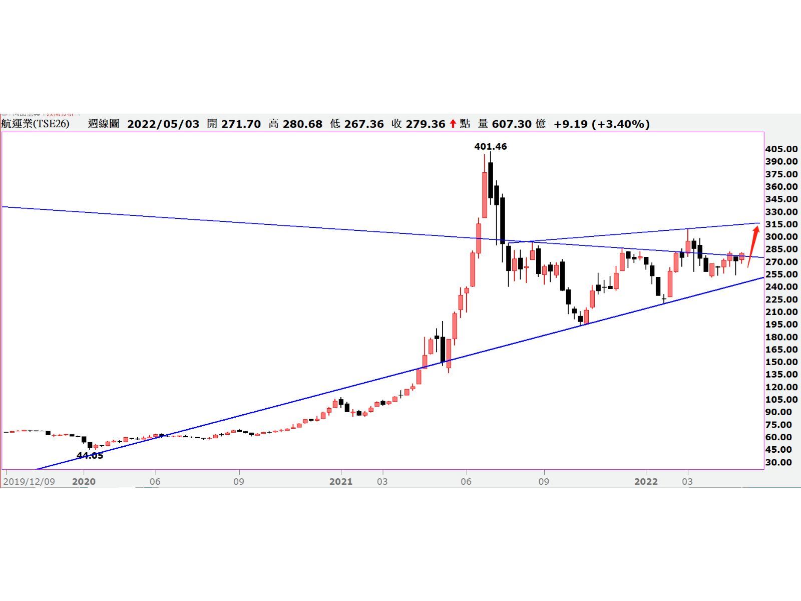 不過更具人氣指標的航運在上海本土確診人數降到五千以下(5/4),全市超過一千六百家超商便利店營業,預期五月第二周或第三周就可以解封,屆時上海貨櫃運價指數(SCFI)可望止跌轉漲,重演去年三月下旬蘇伊士運河堵船,四月下旬運費起漲,五至六月貨櫃輪大漲的格局。