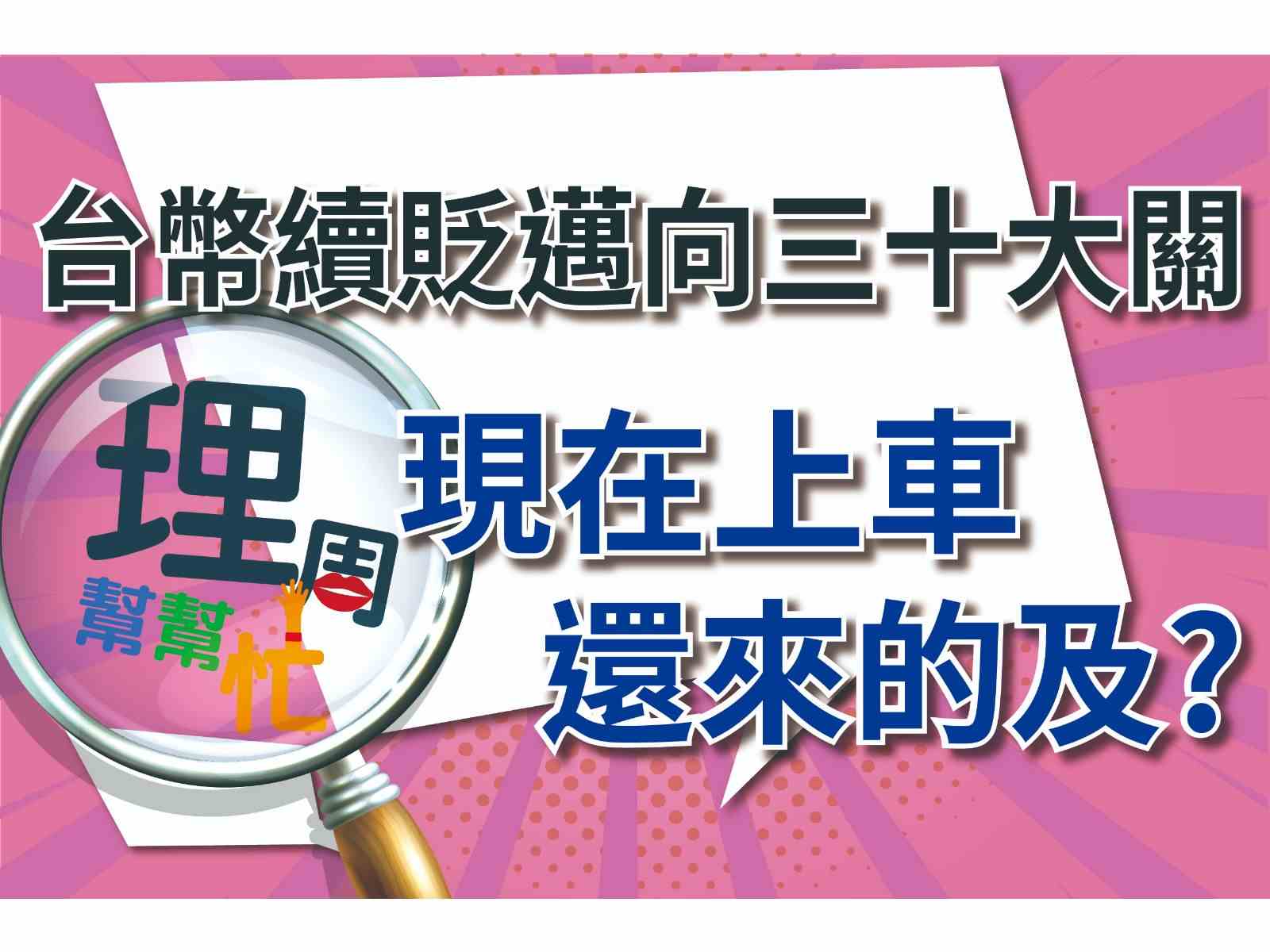 這次台幣貶值除了受到美國升息影響外,日幣無限制購債導致日圓大貶,也是造成台幣貶值幫兇,因此台幣是否會貶破三十大關,必須從這兩方面來看。