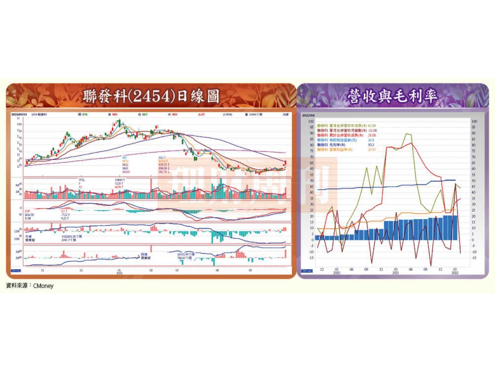 聯發科股價已在八四○元上下整理了近兩個月,四月外資與投信上演你丟我撿的籌碼換手戲碼後,外資也於五月中開始回補,終於在五月三○日正式突破整理區間及四月七日的大量價位。