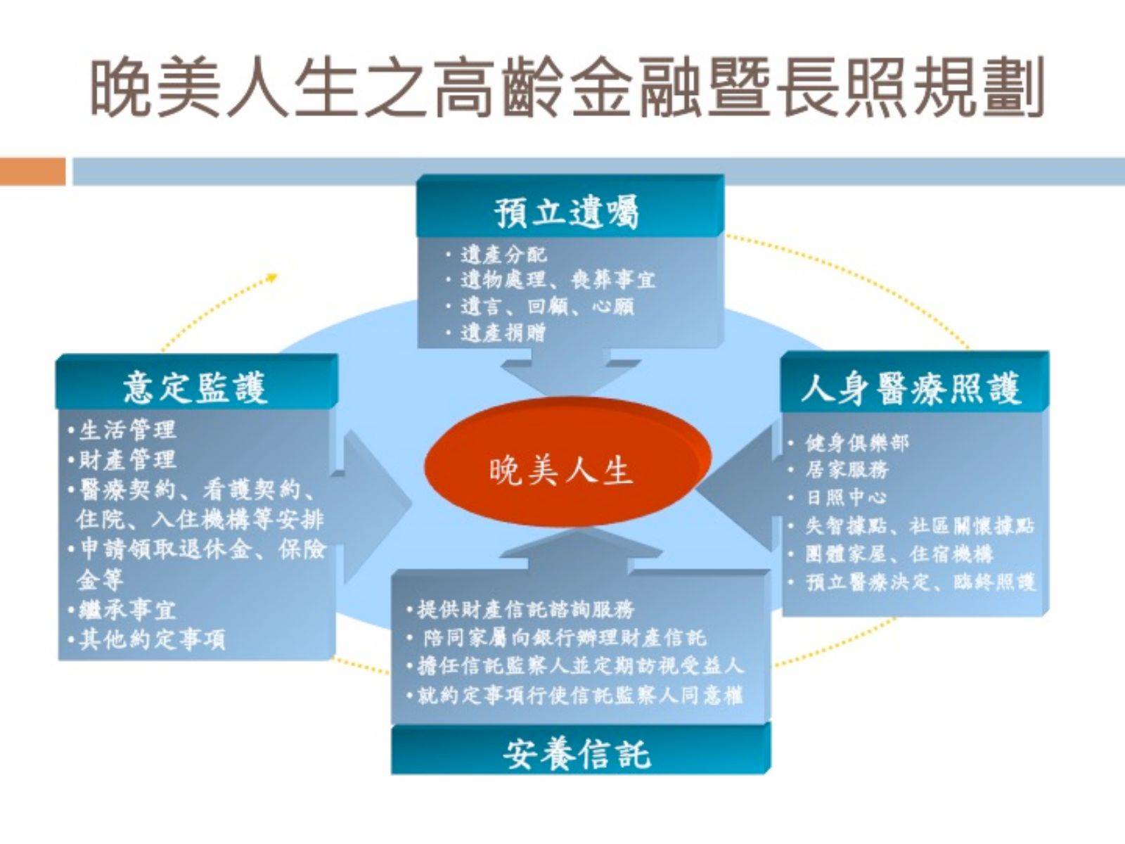 退休長照財務規劃需要資金,沒錢萬萬不能,因此,累積工作收入、持續投資理財、適當的保險規劃,都是不可或缺的。除此之外,打造晚美人生的金鐘罩,一定要把自己晚年想要的「照顧方式」、「照顧品質」規劃進去,善用意定監護制度、安養信託,確保選擇的意定監護人、信託監察人,了解失智照護,懂得如何連結長照資源,才能讓自己晚年的人身醫療照護得到保障。