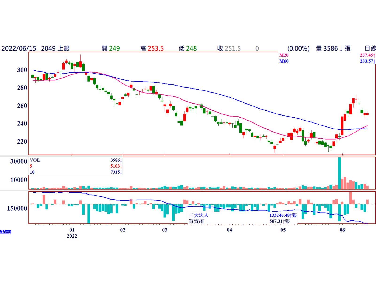受惠半導體、自動化及新能源等產業訂單回溫,加上第二季平均調漲報價5%,推升上銀五月營收創近四十四個月新高,目前滾珠螺桿訂單能見度約四個月,線性滑軌約三到三個半月,工業機器人(單軸或是多關節六軸等)的需求更是看到2024年。