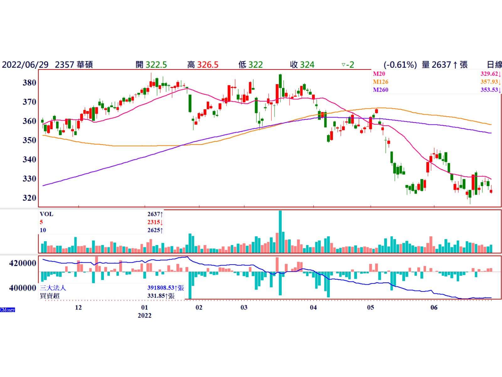 今年疫情又再度升溫,但是通膨造成電腦及主機板銷售下滑,華碩前五個月累計營收2098億,仍成長6.9%,首季EPS 14.04元,年成長6.5%,公司表示今年不可能像去年一樣大幅成長,可是會盡量保持去年獲利高峰,6/29收盤價324元,本益比只有五倍,仍具投資價值。