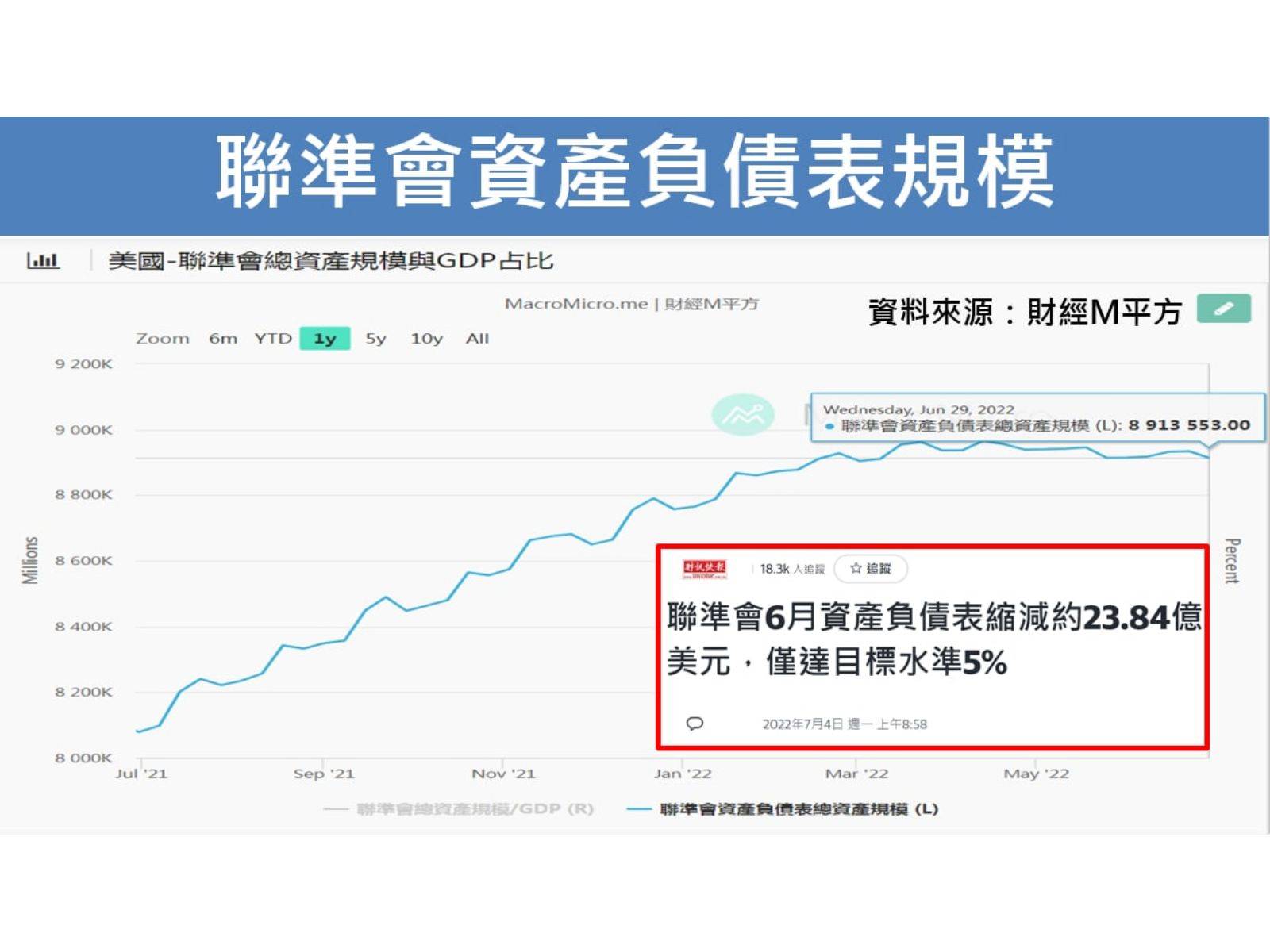 最新公布的聯準會六月資產負債表只縮減約二十三億美元,僅達目標水準5%,聯準會選擇了最溫和的方式─公債到期不再持有,沒有直接在市場進行拋售,但聯準會沒啥動作就已經殺成這樣了,後續縮表幅度擴大時,行情會怎麼走?