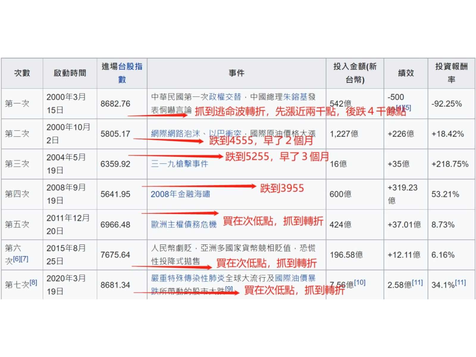 雖然這方法有助於跌勢趨緩,但不具備人為積極扭轉下跌趨勢,好處是國安基金會賺錢,壞處是,股民該遭遇的跌勢與融資追繳,一樣免不了。所以股民必須了解,國安基金召開會議、達成護盤共識、授權、進場,這些步驟並不是一氣呵成,很多時候國安基金扮演的角色更接近錦上添花的抄底的大戶,而非股民寄望的消災解厄的超級英雄。