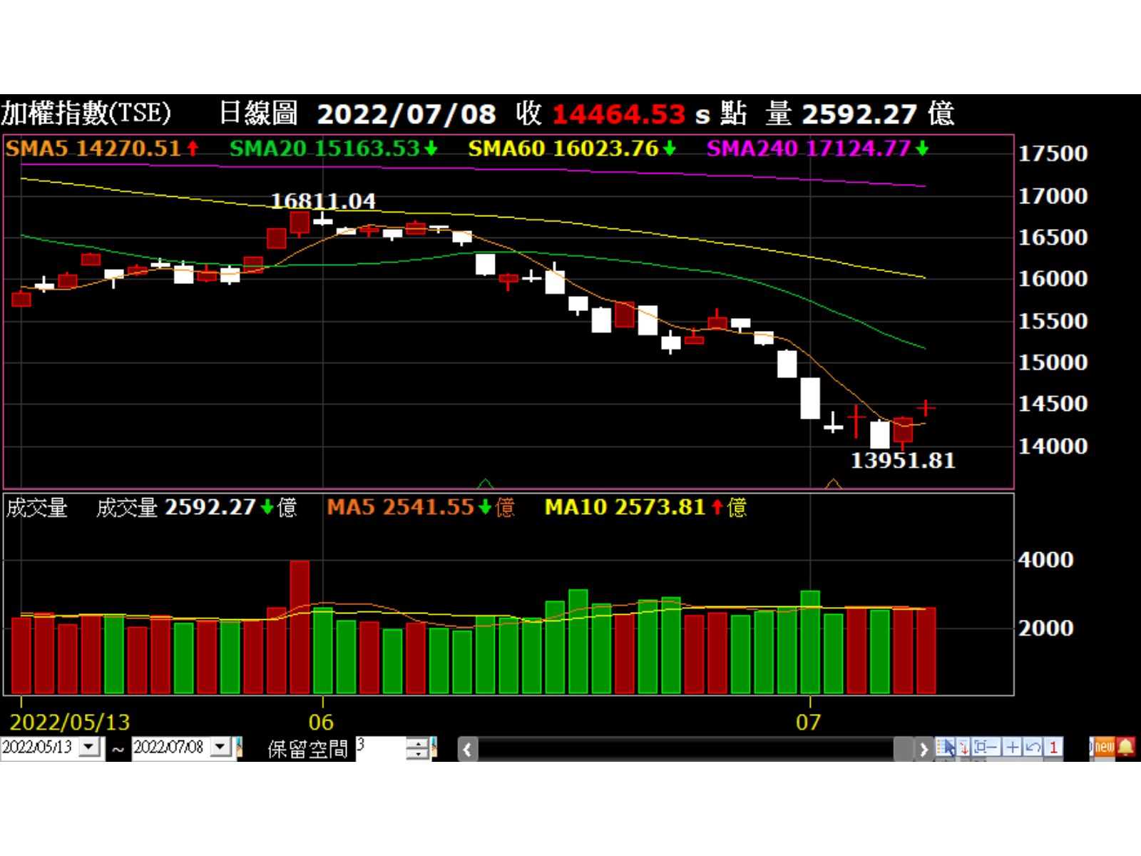 果然台股連續在周四(七月七日)、周五(七月八日)兩天大漲,雖然周五盤中突發日本前首相安倍晉三倍遭槍擊身亡,導致亞洲股市大拉回,但地緣政治的波動通常都是短期,因此台股在接下來的時間依舊處於多方時間,「華爾滋行情」的機率較大,也就是進三退二,因此短線上不過度追高,震盪也不用太過擔心。