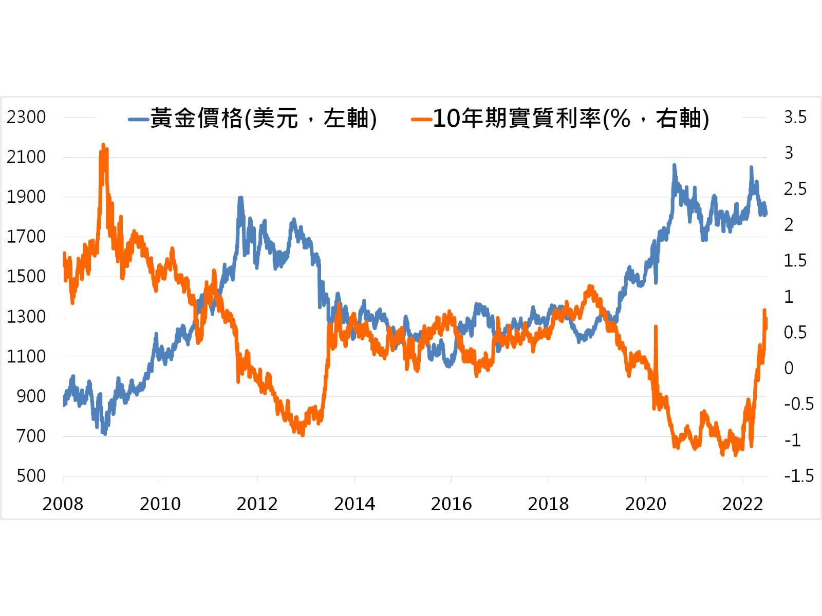 受俄烏戰爭爆發的避險需求影響,黃金期貨最活絡月份曾經一度上衝至每盎司2078.8美元,不過隨著聯準會加速升息,金價自五月以來已連續二個月陷於1,800~1,880美元橫盤整理,現階段影響投資情緒最重要為利率上升及景氣衰退疑慮兩大因素,以下分別探究。