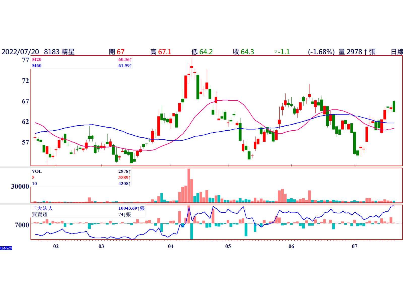 精星(8183)是印刷電路板組裝(PCBA)廠,工控(34%)應用主要出貨中國機械重工大廠,車用(66%)產品以新能源車為主(佔比七成)。打入中國新能源車供應鏈,同時取得中國一線電池廠寧德時代及電動車大廠比亞迪電池管理系統板(BMS)訂單。