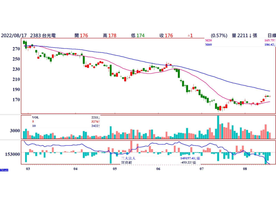 股價於7月13日145元觸底彈升,彈高至月線附近後,順著月線進入三周的橫向整理,8月11日量價齊揚顯示短期整理結束,有機會向上挑戰200元整數關卡。